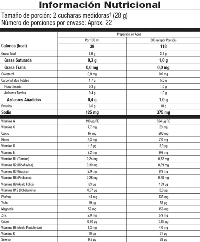 La Bebida de Proteína en Polvo es una excelente manera de reforzar tu consumo de proteínas, vitaminas y minerales. Las proteínas contribuyen a satisfacer el apetito Es una mezcla en polvo para preparar bebida a base de proteína de soya, vitaminas y minerales, con 18 g de proteína. Complementa la nutrición diaria.